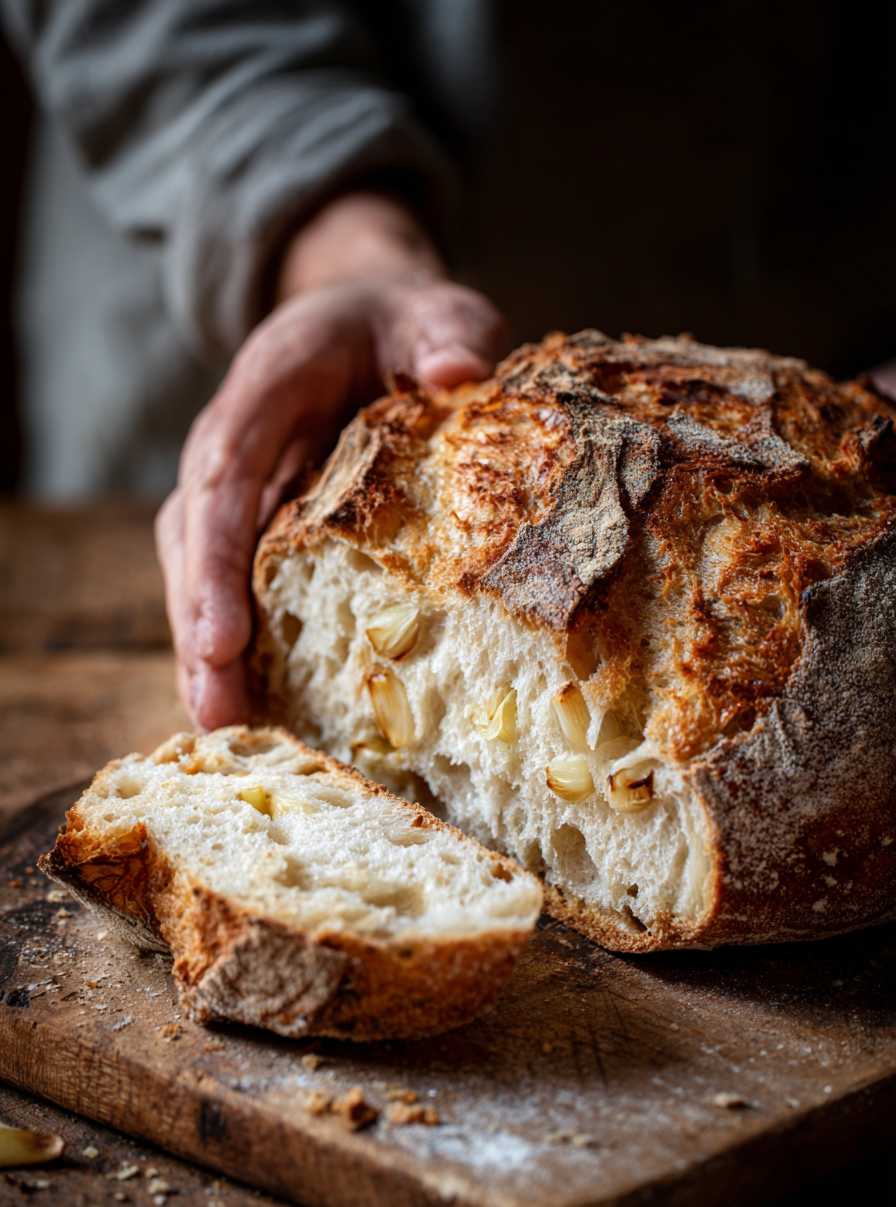 Rising from the oven with a golden-brown crust and the unmistakable aroma of roasted garlic, this sourdough bread is a … Read more