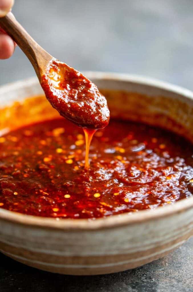 Hit that blend button and watch the mixture transform into a thick, reddish-brown paste—glossy, rich, and intensely aromatic. You want it smooth enough to coat chicken easily but thick enough to cling. If the mixture is too stiff, add a splash more oil or lime juice to loosen it. Tip: For a touch of sweetness that balances the spice, add a spoonful of honey before blending. It’s not traditional, but it rounds everything out beautifully.