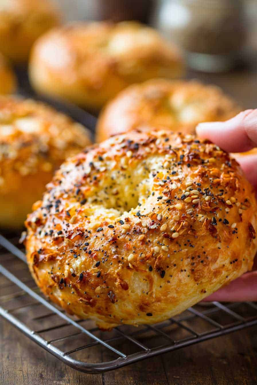 You can freeze these bagels for up to two months. Slice them before freezing so you can pop them directly into the toaster later. Because who has time for thawing at 7 a.m.? Not us.