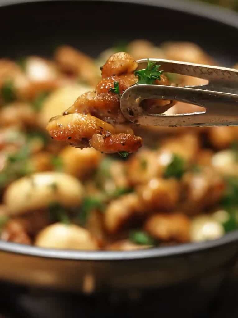 - One pan wonder: Everything happens in one skillet — fewer dishes, more flavor. The chicken picks up all the garlicky, buttery, mushroom goodness in one go.