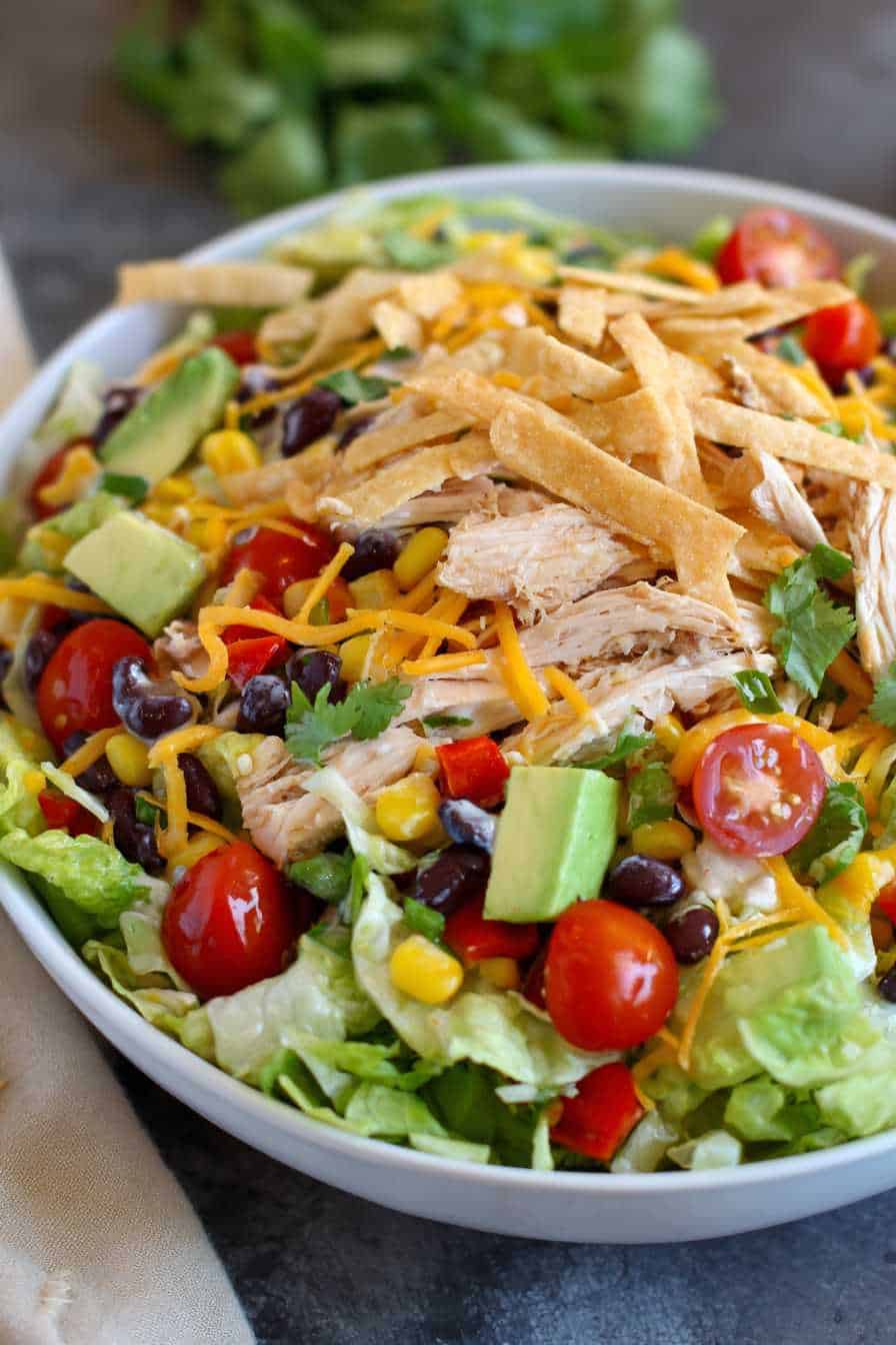 Store leftovers in the fridge for up to 3 days in an airtight container. Keep the dressing separate if you plan to make it last longer. When ready to eat, toss in fresh avocado and tortilla strips to bring back that just-made crunch. Avoid freezing—it ruins the texture of the veggies and dressing.